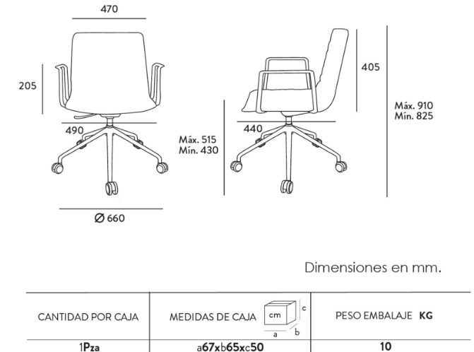 - Acojinado con hule espuma laminada de 25 mm de espesor, densidad 27 kgs/m³ y alta resiliencia