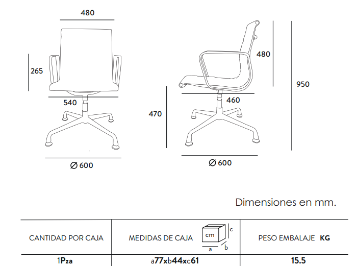 - Asiento y respaldo en forma de “L” en material de aluminio fundido